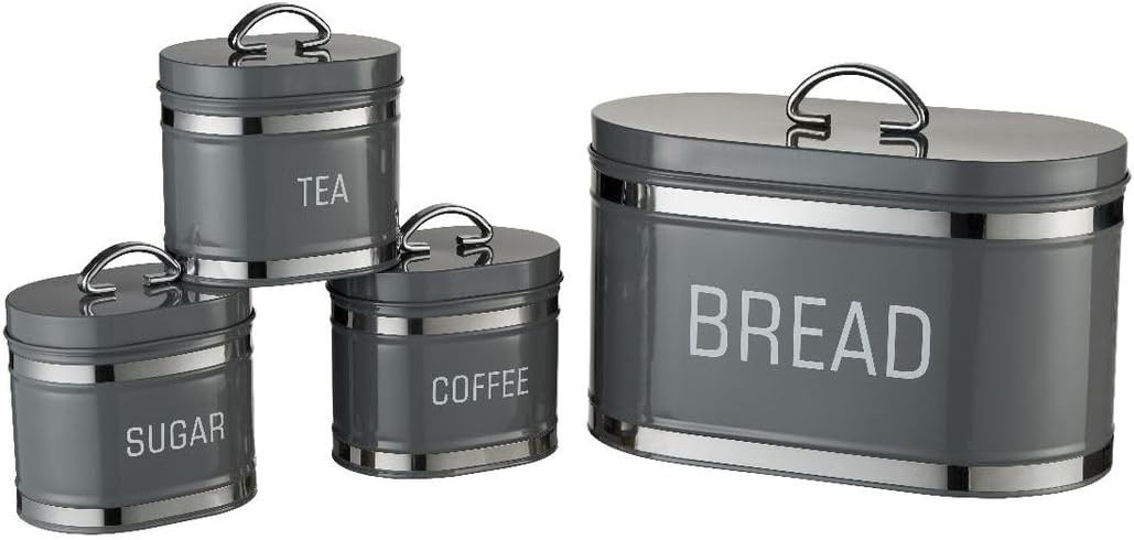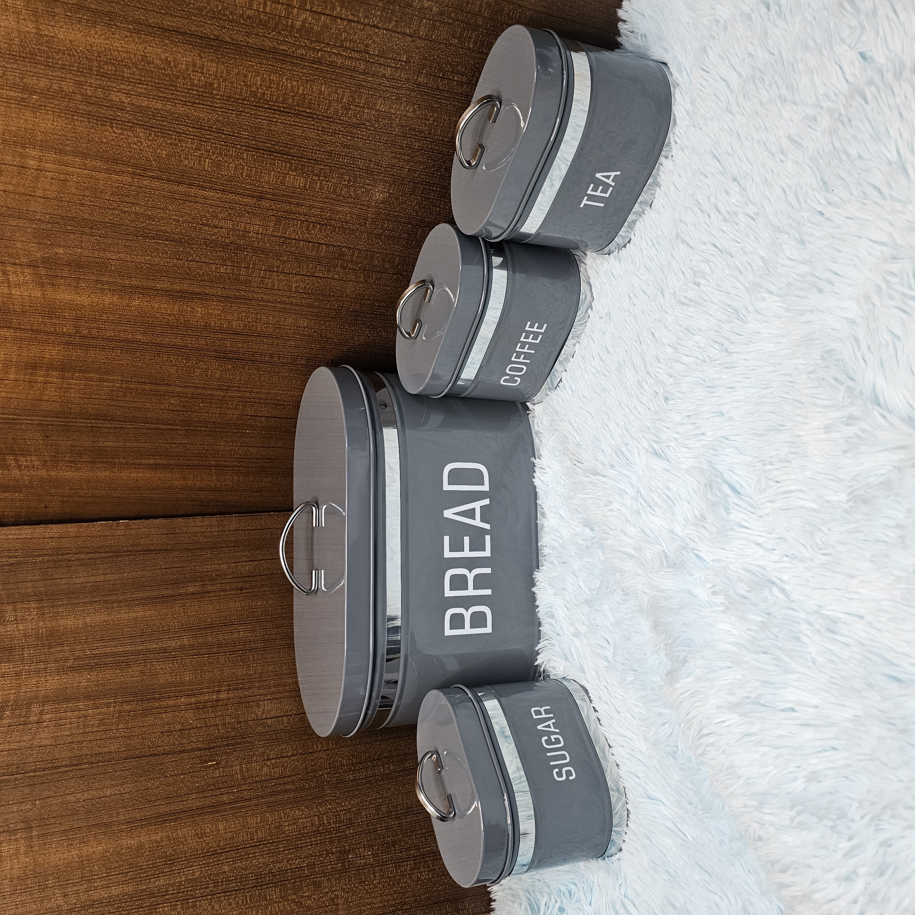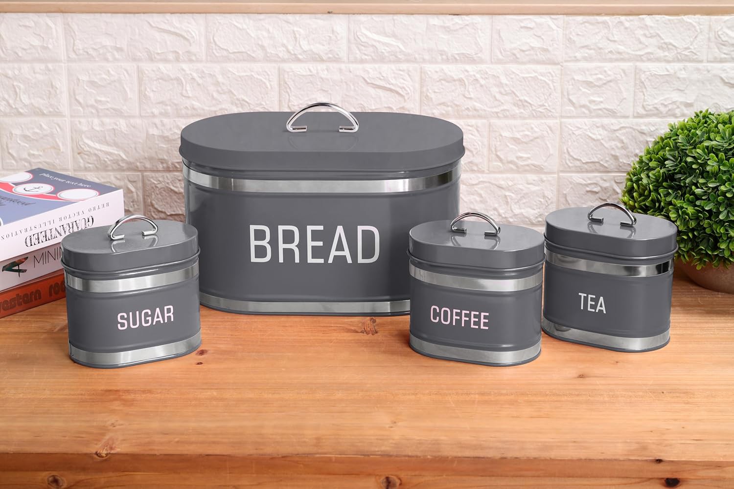 4 Pcs Bread Box & Tea, Coffee, Sugar Storage Jar, Container Set