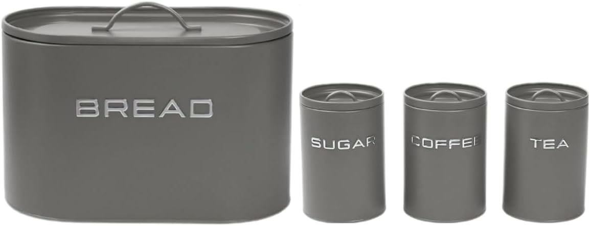 4 Pcs Bread Box & Tea, Coffee, Sugar Storage Jar, Container Set