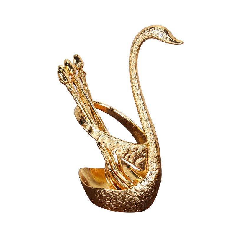 6pcs Classical Golden Swan Spoon Holder Set – Vintage Zinc Alloy (Gold Plated)