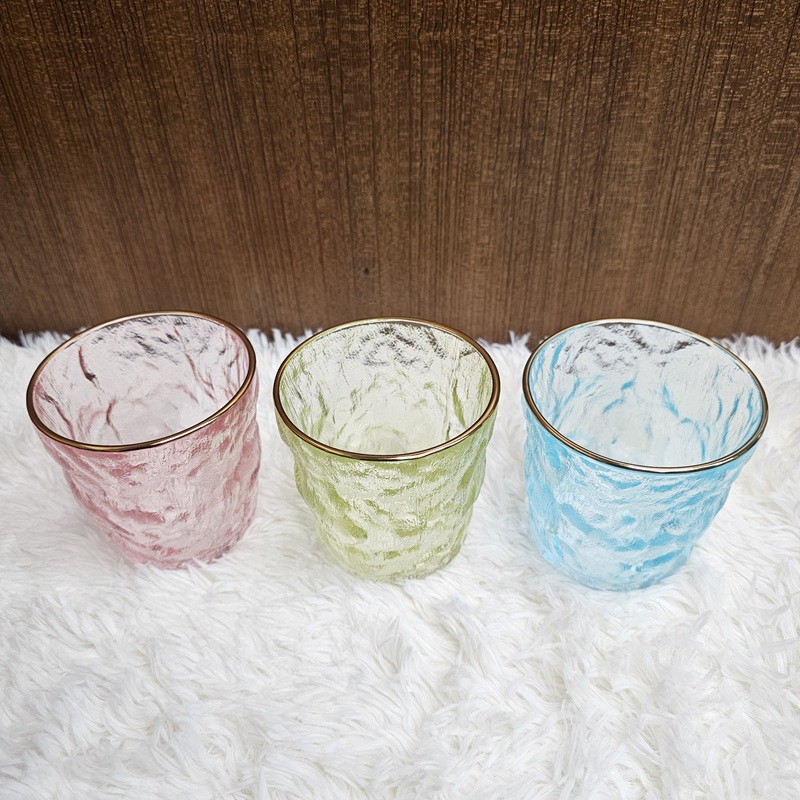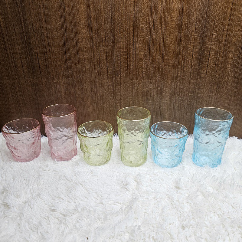 Add a touch of vibrance and elegance to your drinkware collection with our Colorful Iced Design Glasses featuring a luxurious golden rim. Expertly crafted from durable glass, these stunning pieces are designed with a permanent color finish that ensures lasting brilliance wash after wash. The unique iced texture not only enhances their beauty but also provides a secure grip, making them as practical as they are stylish.