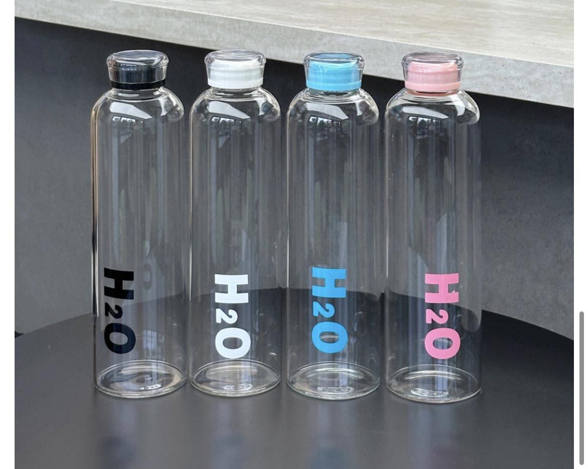 H2O Decorated Borosilicate Glass Water Bottle – 1000ML | Leak Proof | Stylish & Eco-Friendly