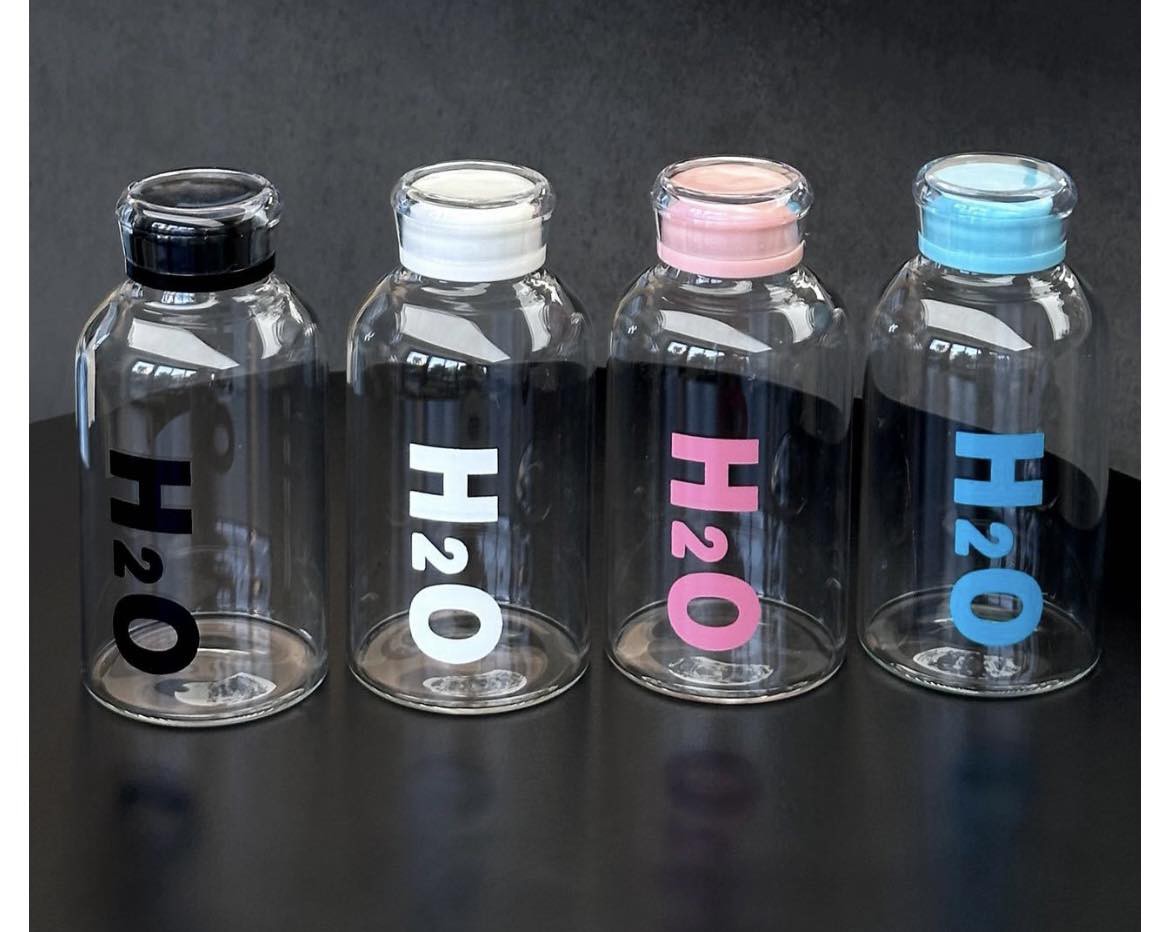 Elevate your hydration experience with the H2O Decorated Glass Bottle — where elegance meets practicality.