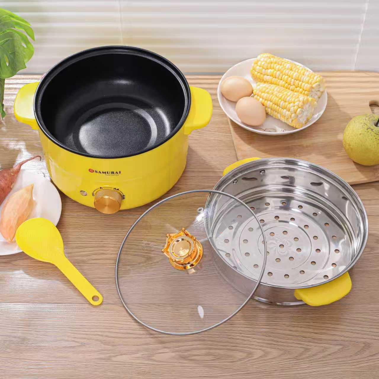 Samurai Electric Multifunctional Cooking Pot โ 2.8L, Non-Stick, Portable & Stylish (Yellow)