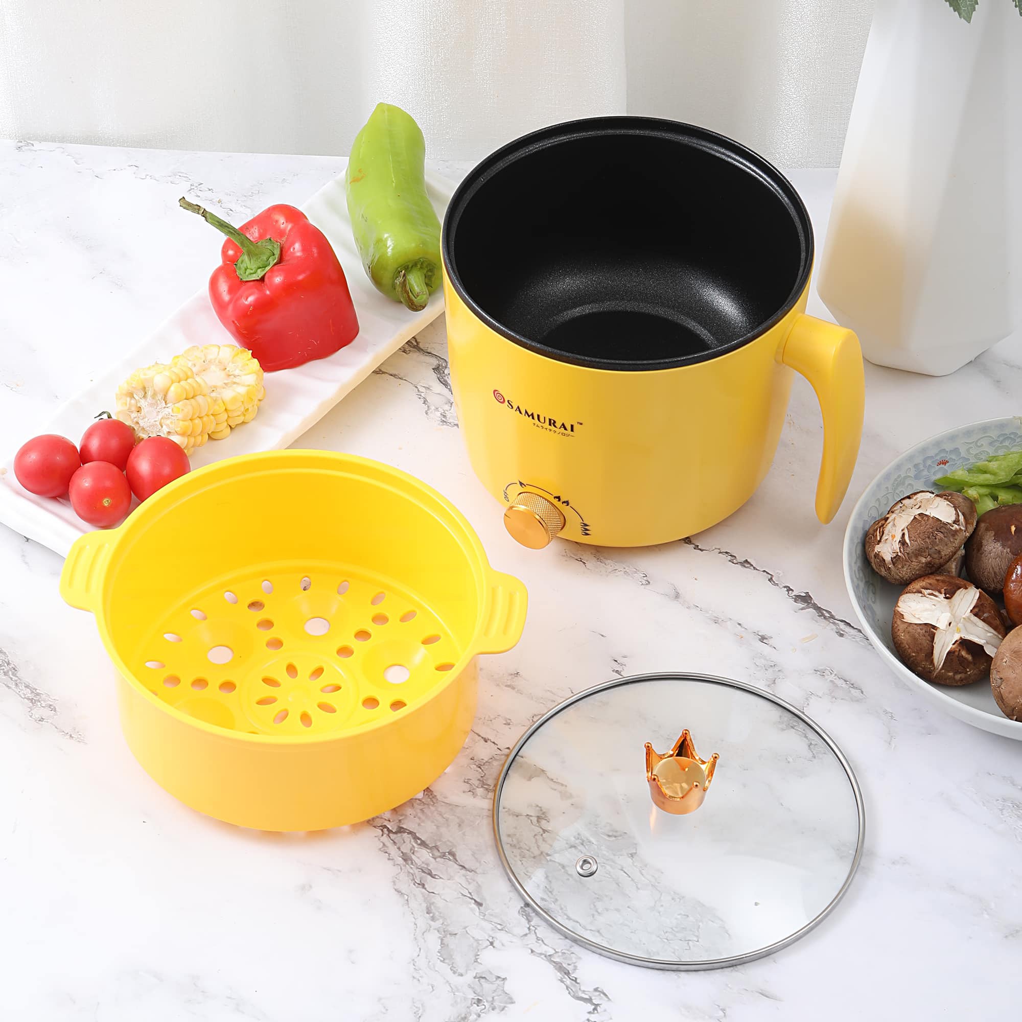 Samurai Electric Multifunctional Cooking Pot โ 2.8L, Non-Stick, Portable & Stylish (Yellow)