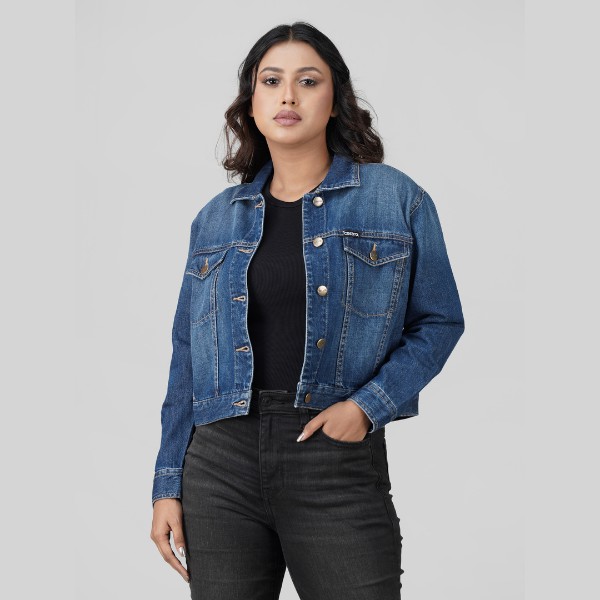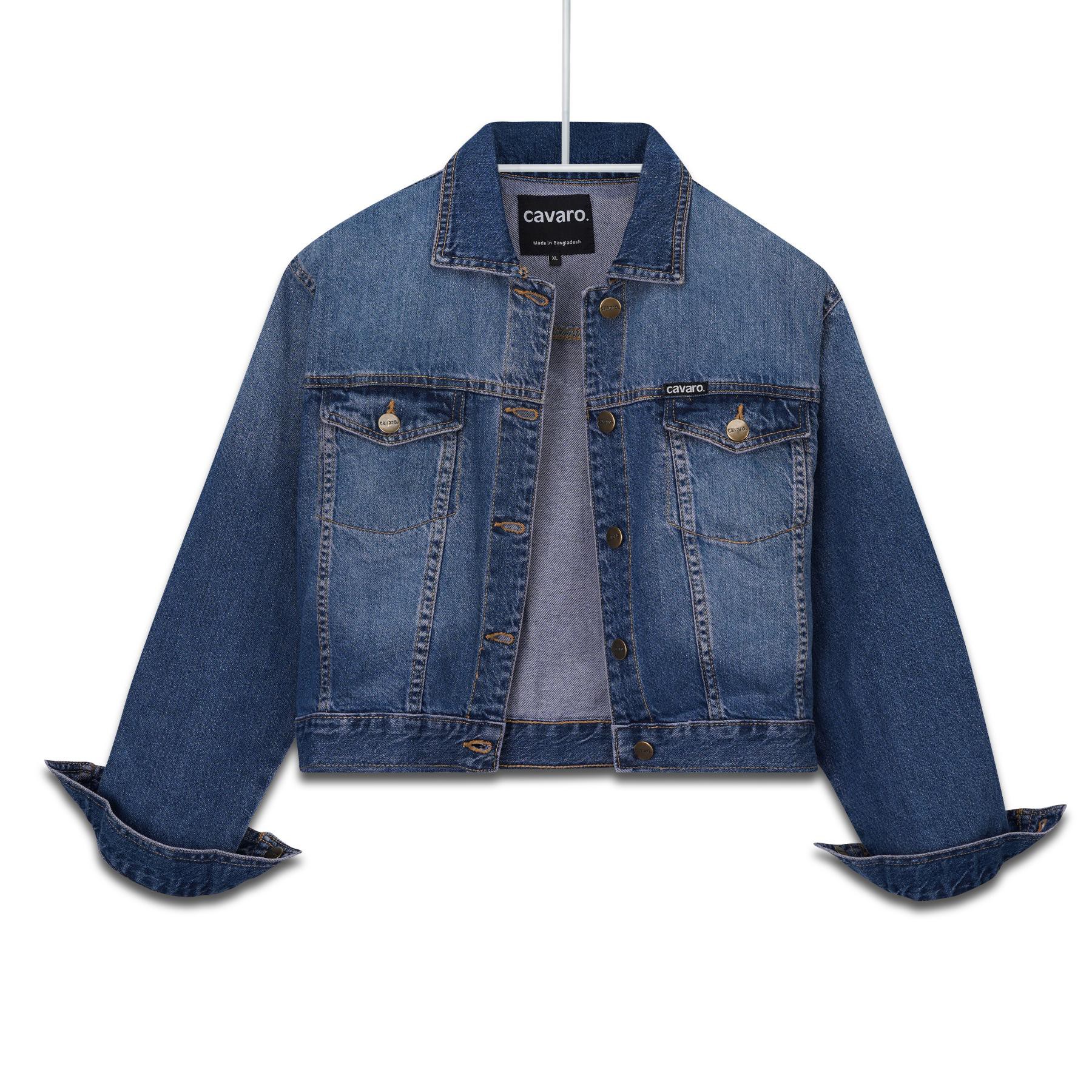 Women’s Cropped Denim Jacket – Mid Dark Wash | Cavaro