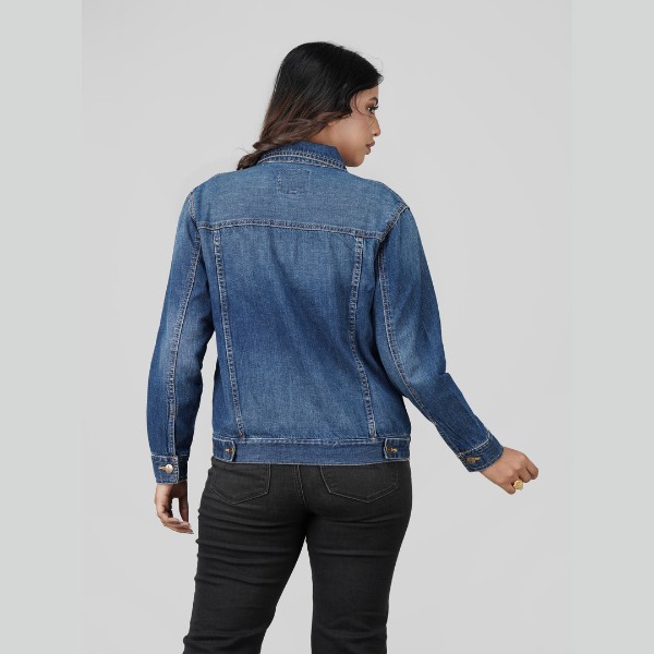 Designed in a relaxed boyfriend/regular fit, it’s ideal for effortless layering in all seasons. The mid dark wash finish gives a modern yet classic appeal, while authentic Western back yoke detailing enhances its premium look.