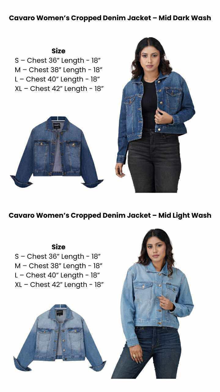 Refresh your everyday style with the Cavaro Women’s Cropped Denim Jacket – Mid Light Wash, exclusively at Familia Mart. Crafted from 100% premium cotton denim (11.5 oz), this jacket offers a soft, breathable feel while maintaining the durability and structure of authentic denim.