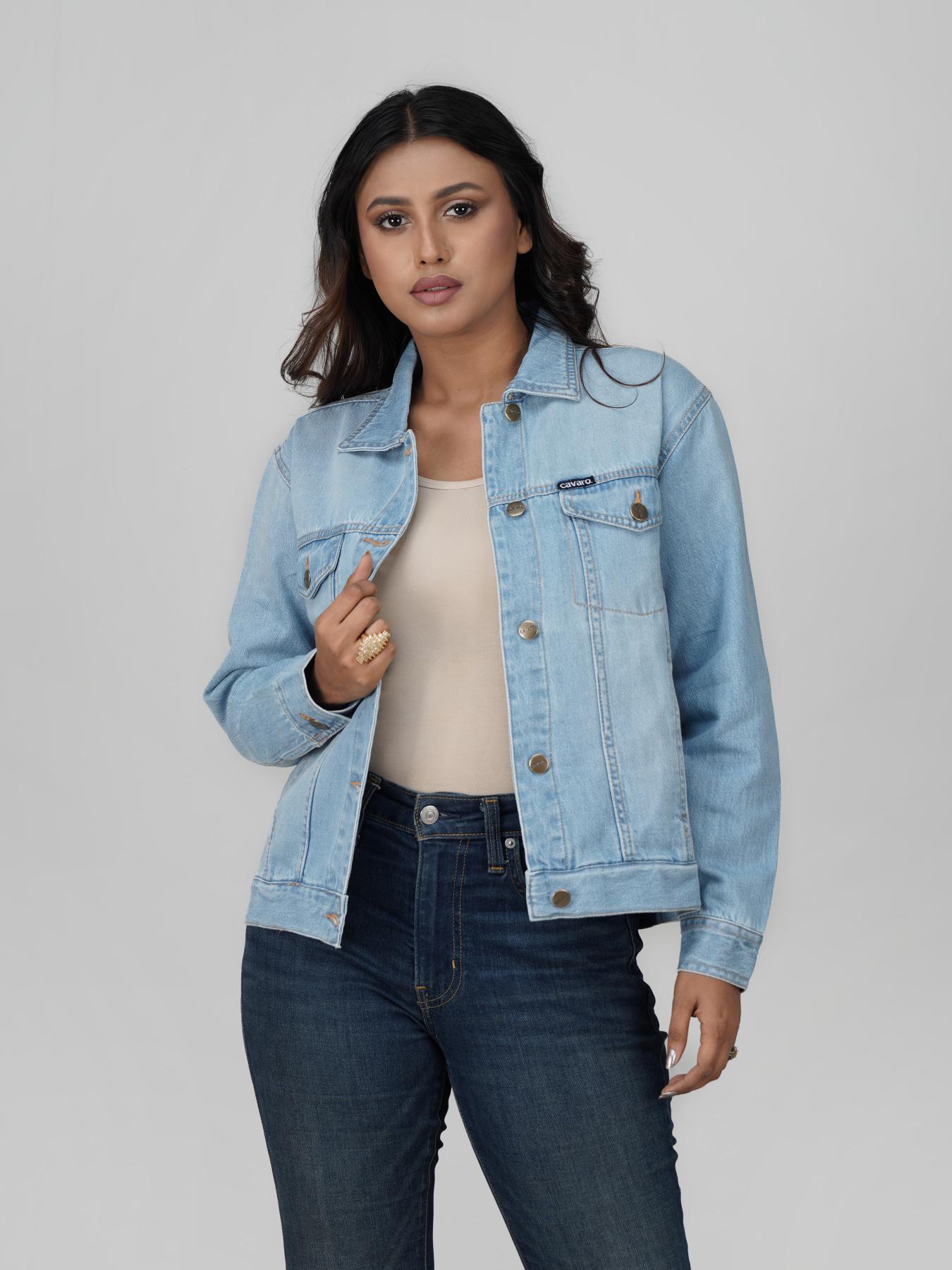 Women’s Regular Fit Denim Jacket – Light Wash | Cavaro