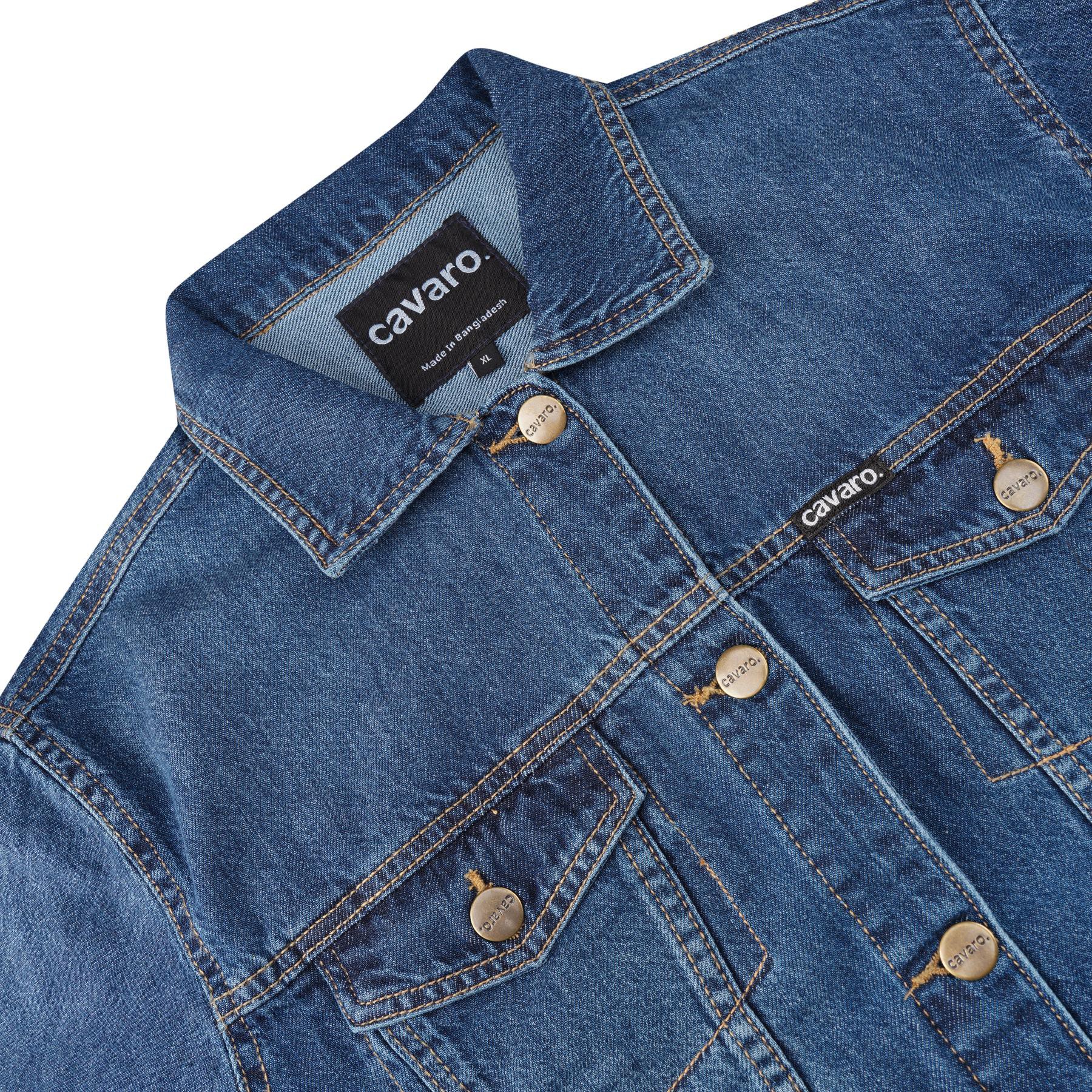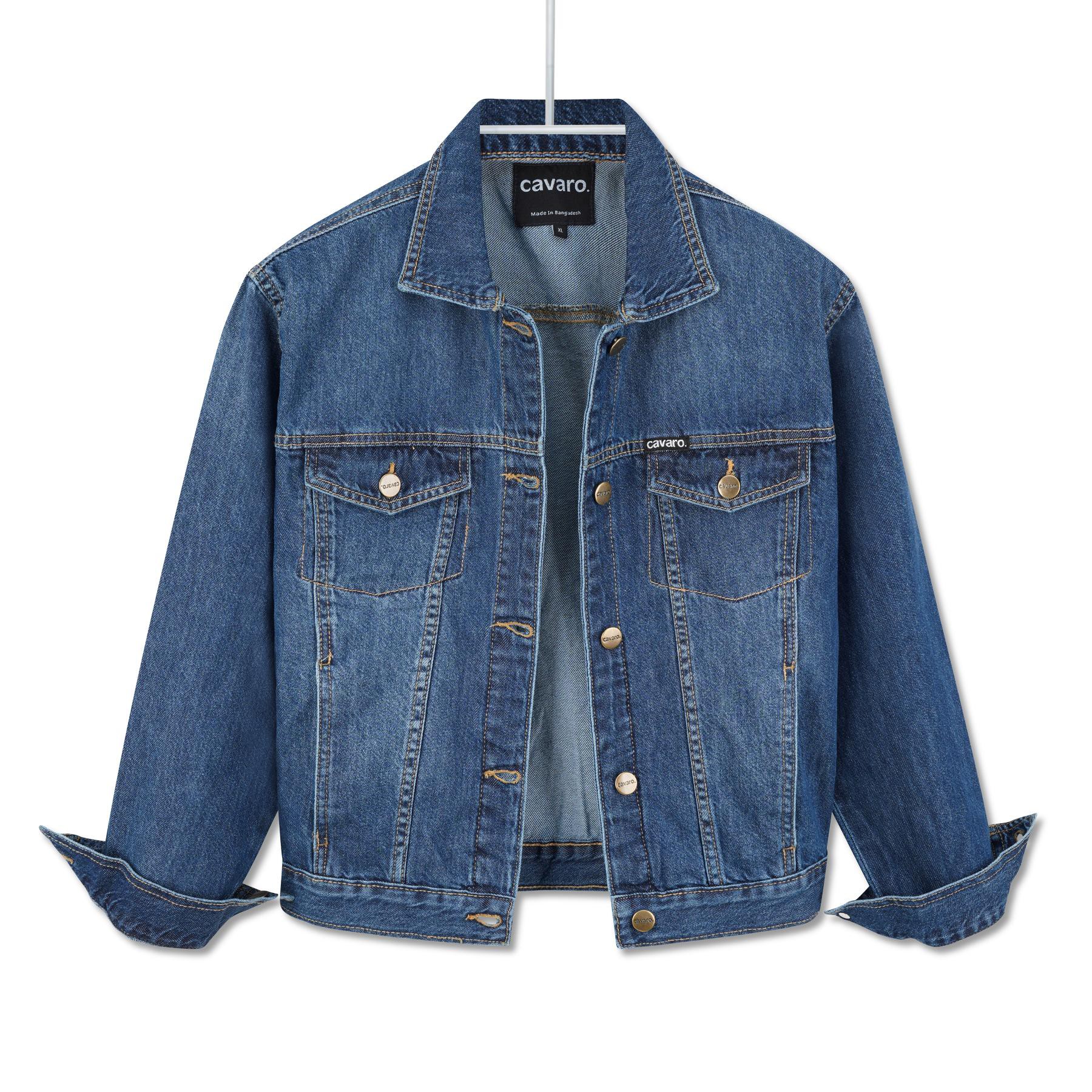 Refresh your wardrobe with the Cavaro Women’s Regular Fit Denim Jacket – Mid Dark Wash, available at Familia Mart. Crafted from 100% premium cotton denim (11.5 oz), this jacket provides a soft, breathable feel while ensuring durability and structure.