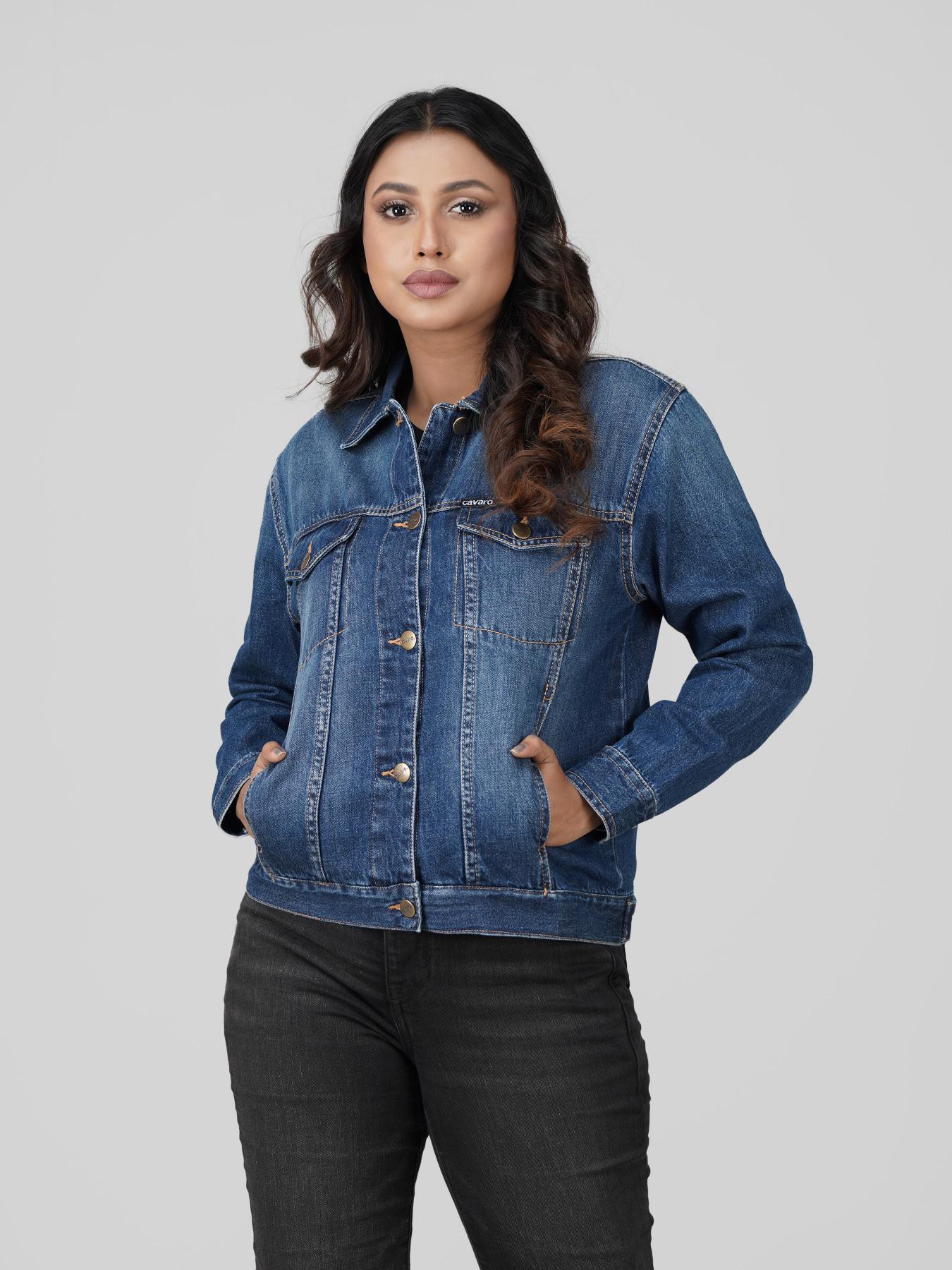 Women’s Regular Fit Denim Jacket – Mid Dark Wash | Cavaro